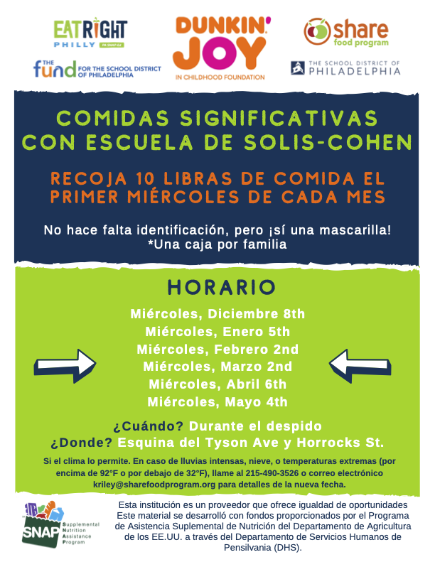 SPANISH Solis-Cohen Meaningful Meals Food Distribution Flyer